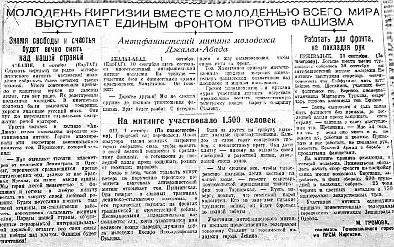 - Михайлова С. А. Киргизия в годы Великой Отечественной войны // Война и мир в Отечественной и мировой истории. – 2020. – С. 650–653.